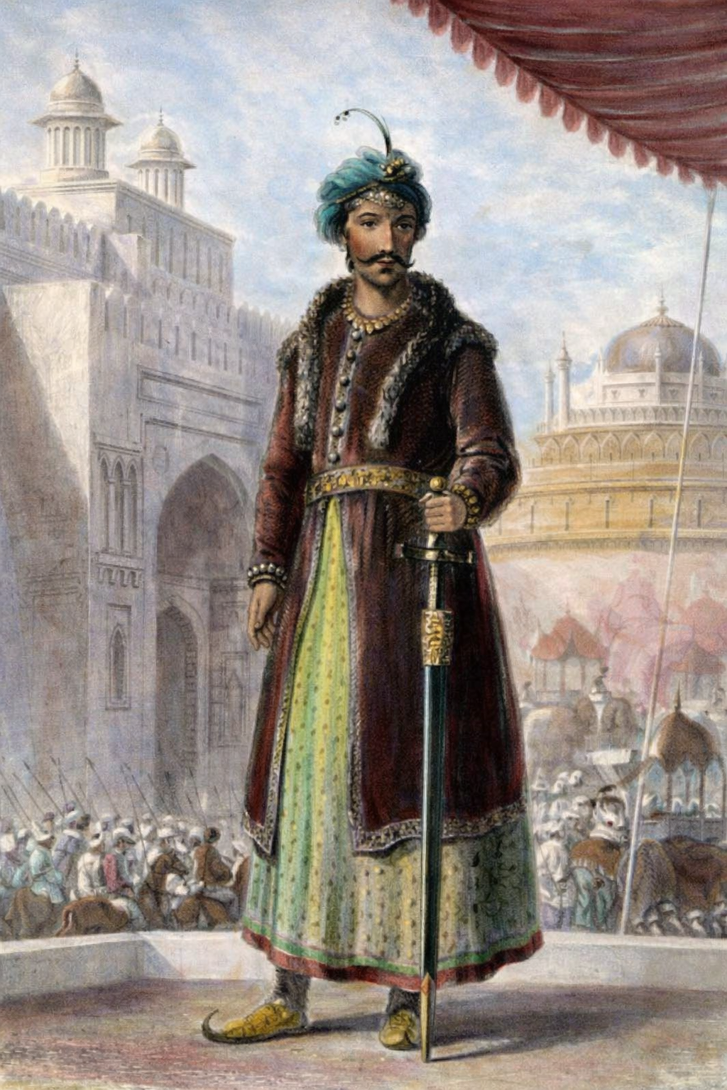 “It happened one day that a fakir (a religious mendicant), a man of saint-like mind, passed that way, and seeing the Sultan gave him a life-bestowing benediction, saying to him, ‘Fortunate child, at a future time thou will be the king of this country, and when thy time comes, remember my words—take this temple and destroy it, and build a masjid in its place, and for ages it will remain a memorial of thee.’ The Sultan smiled, and in reply told him that ‘whenever, by his blessings, he should become a padishah, or king, he would do as he (the fakir) directed’. When, therefore, after a short time, his father became a prince, the possessor of wealth and territory, he remembered his promise, and after his return from Nagar and Gorial Bunder, he purchased the temple from the adorers of the image in it (which after all was nothing but the figure of a bull, made of brick and mortar) with their goodwill, and the Brahmins, therefore, taking away their image, placed it in the Deorhi Peenth, and the temple was pulled down, and the foundations of a new masjid raised on the site….”