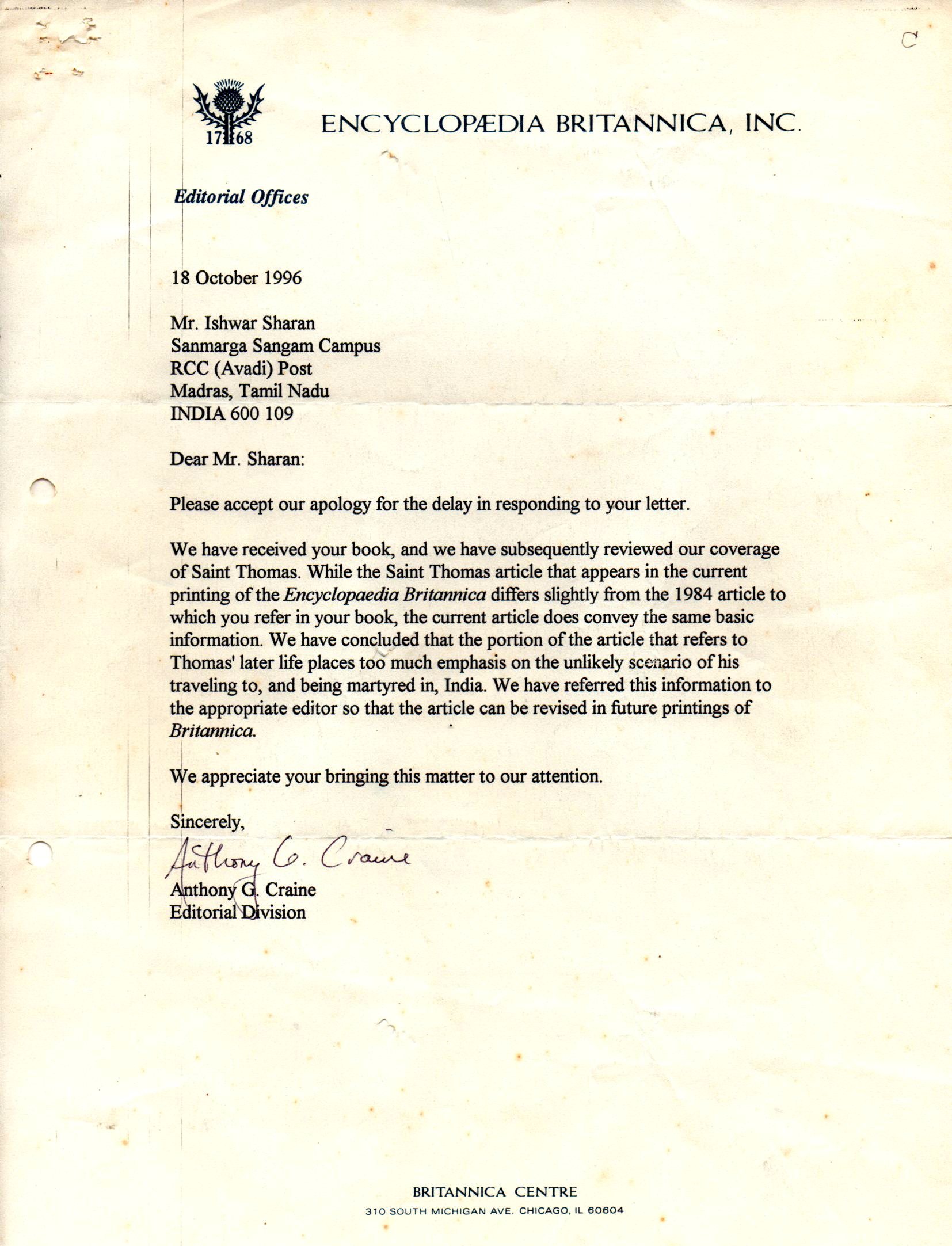 Encyclopaedia Britannica’s reply to Ishwar Sharan